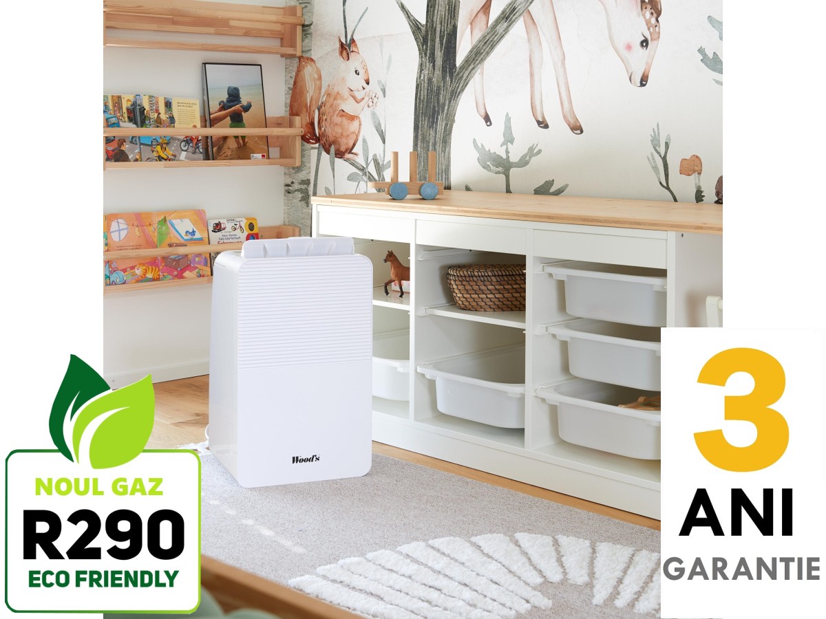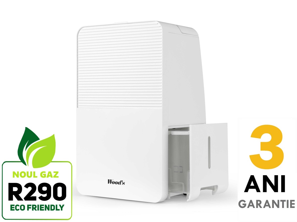 Noutatea consta in noul gaz refrigerant ecologic R290. Woods este prima companie care fabrica si introduce pe piata dezumidificatoare care functioneaza cu un agent frigorific prietenos cu mediul inconjurator. Conform Directivei EU, incepand cu anul 2020, nu vor mai putea fi fabricate si introduse pe piata echipamente care functioneaza cu agenti frigorifici poluanti.