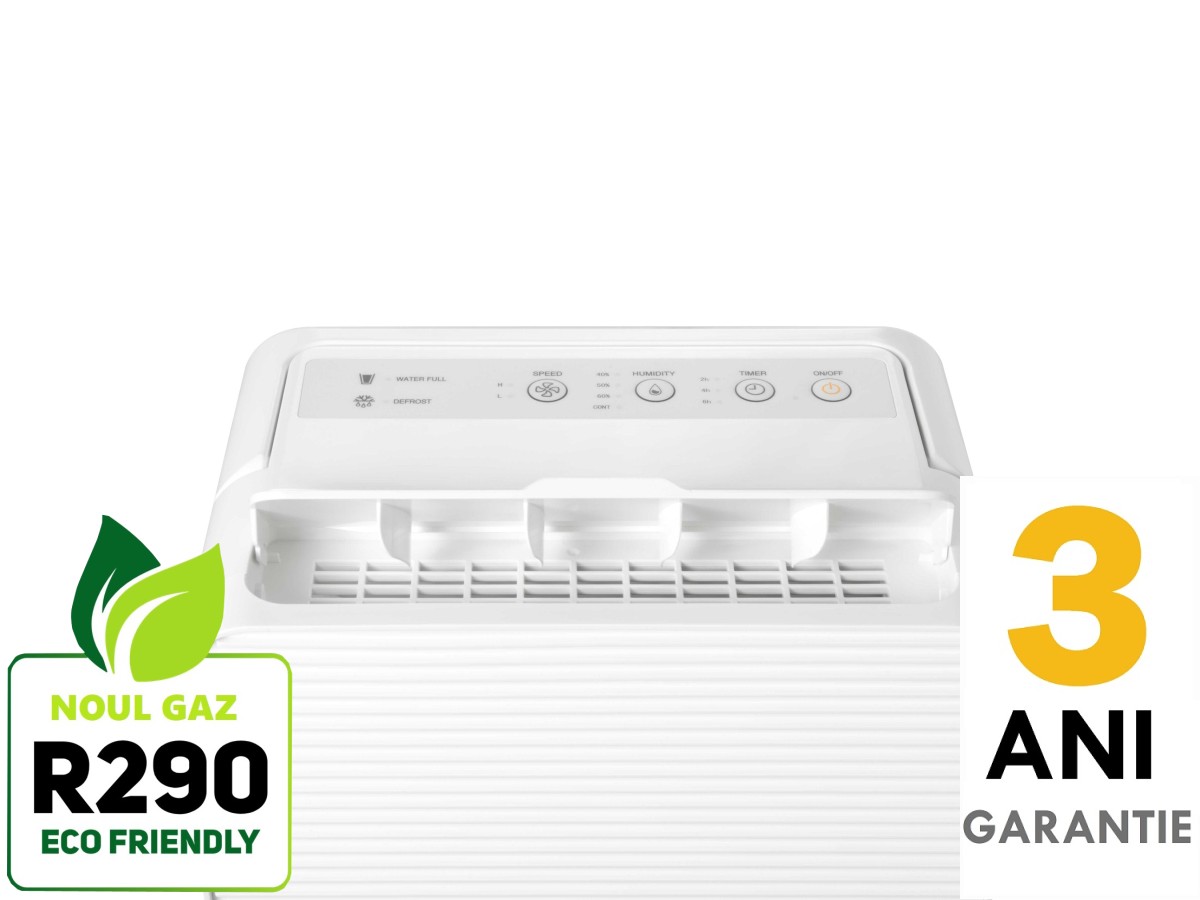 Dezumidificator Woods MDK11 Capacitate 10 litri/zi Uscare rufe Silentios Setare umiditate Afisaj electronic Timer, suprafata 40 mp
