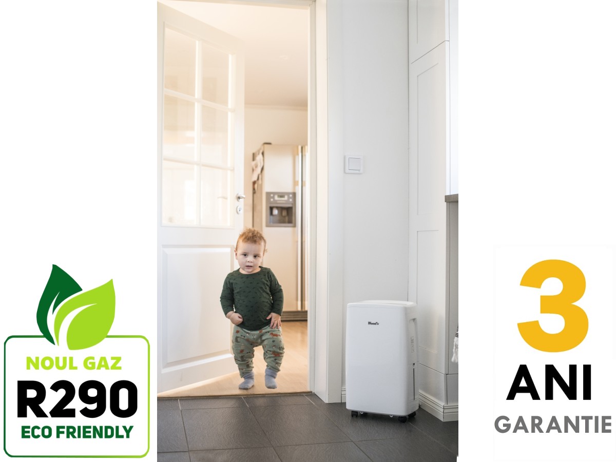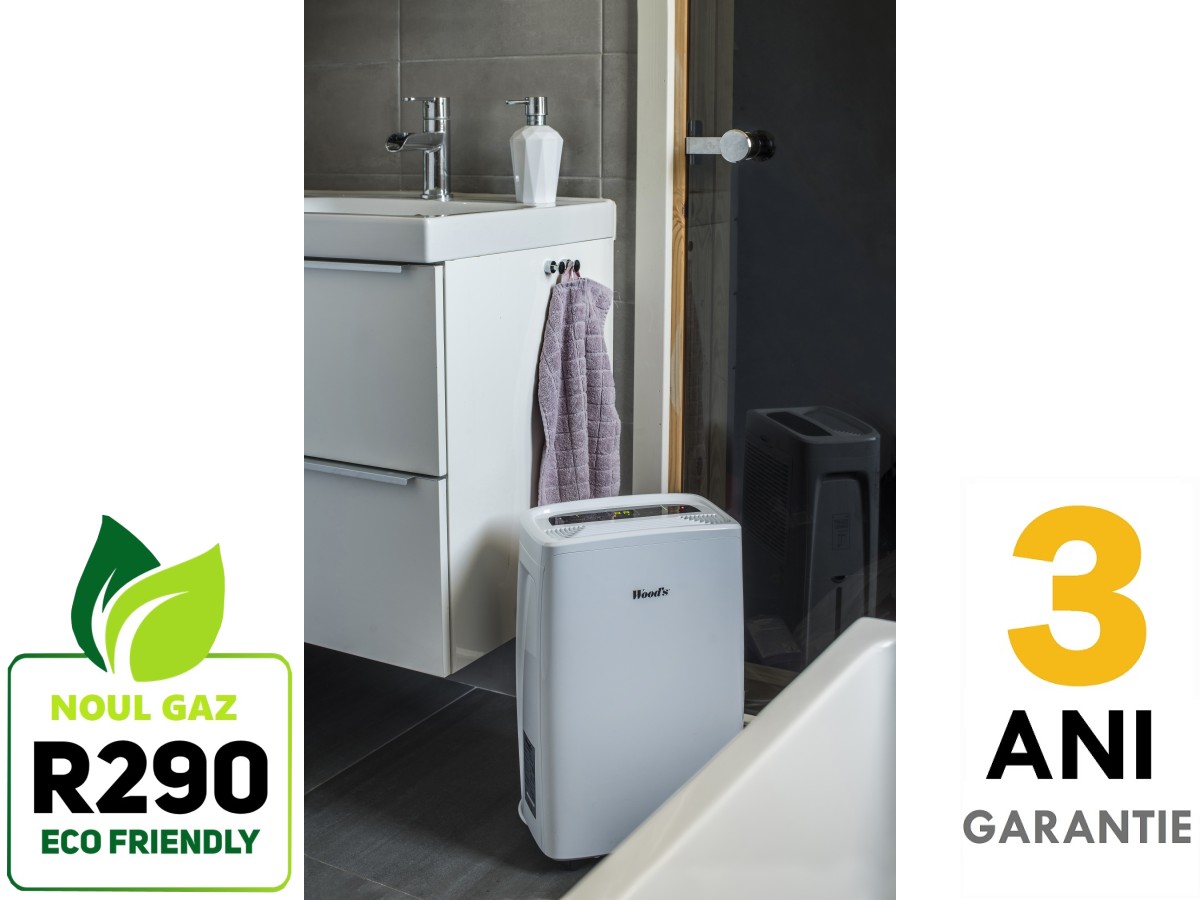 Noutatea consta in noul gaz refrigerant ecologic R290. Woods este prima companie care fabrica si introduce pe piata dezumidificatoare care functioneaza cu un agent frigorific prietenos cu mediul inconjurator. Conform Directivei EU, incepand cu anul 2020, nu vor mai putea fi fabricate si introduse pe piata echipamente care functioneaza cu agenti frigorifici poluanti.