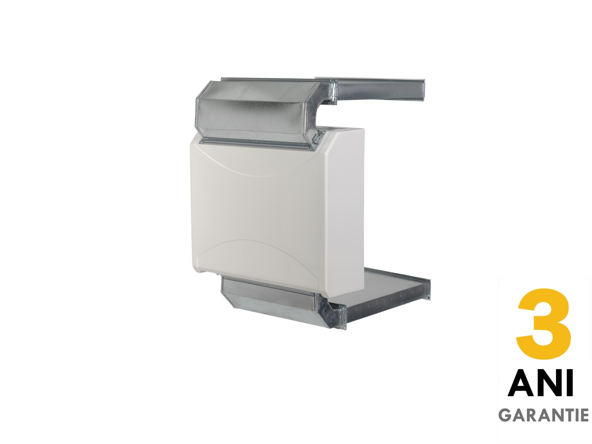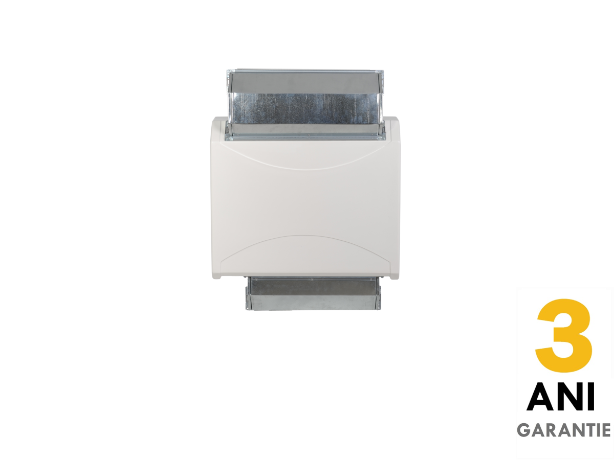 Silențios. Instalare în interior sau în exteriorul clădirii. Racordabil la plenumuri + grile aluminiu. Grosime maximă zid: 40 cm.