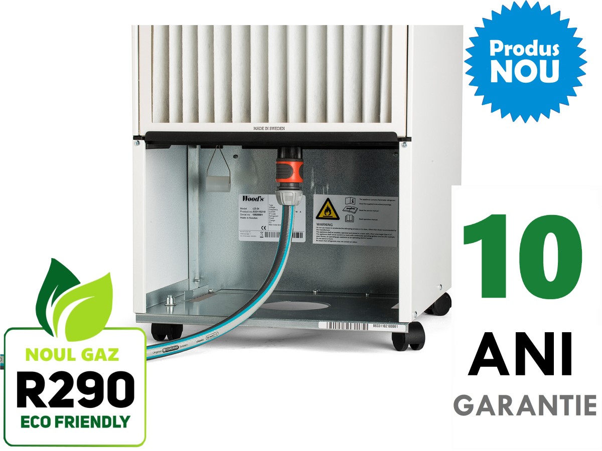 Dezumidificator profesional Woods LD24 fabricat in Suedia, echipat cu filtru de particule, garantie 10 ani la schimbarea filtrului anual