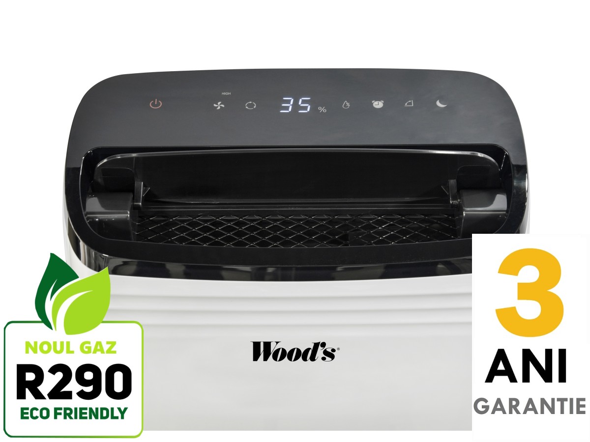 Dezumidificator Woods MDK21 Capacitate 20 litri/zi silentios setare umiditate afisaj electronic timer, suprafata 70mp