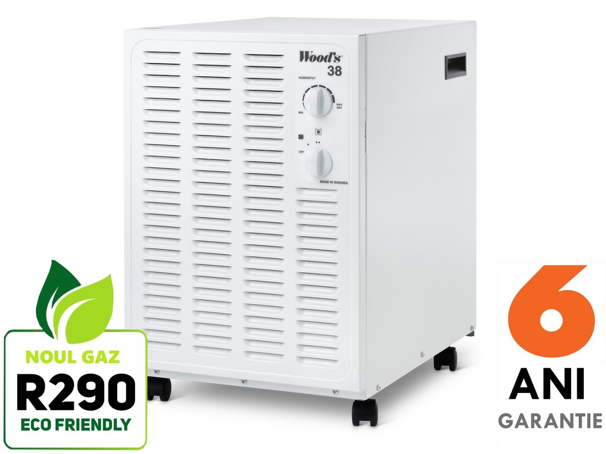 Noutatea consta in noul gaz refrigerant ecologic R290. Woods este prima companie care fabrica si introduce pe piata dezumidificatoare care functioneaza cu un agent frigorific prietenos cu mediul inconjurator. Conform Directivei EU, incepand cu anul 2020, nu vor mai putea fi fabricate si introduse pe piata echipamente care functioneaza cu agenti frigorifici poluanti.