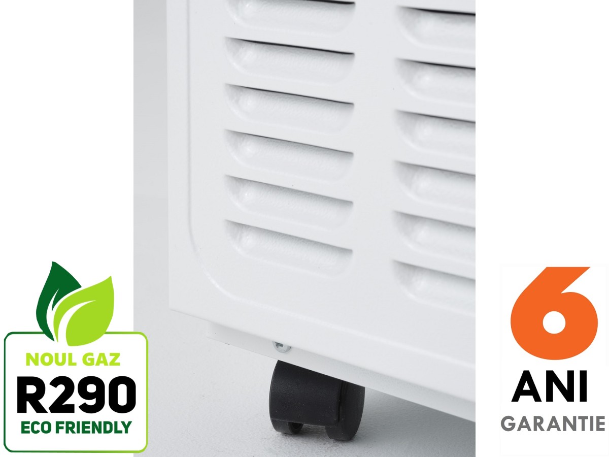 | Capacitate (litri/zi) | Dezumidificare la 20˚C și 70% UR: 25,00 L/ 24h Dezumidificare la 30˚C și 80% UR: 41,50 l/24h |