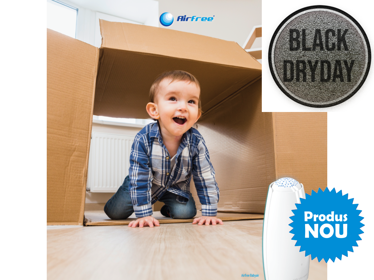 Sterilizatorul de aer Babyair de la Airfree este special creat pentru camerele bebelusilor și ale copiilor: față de restul modelelor, acesta are încorporată lumină cu proiecție pe tavan, în 3 culori alternative: albastru, roșu și verde: steluțele și luna, pentru relaxare. Acest sterilizator de aer poate îmbunătăți calitatea aerului din camera copiilor, pentru un somn liniștit și sănătos, fără bacterii, viruși, polen, acarieni și alte particule dăunătoare care se întâlnesc inevitabil în aerul pe care îl respirăm.